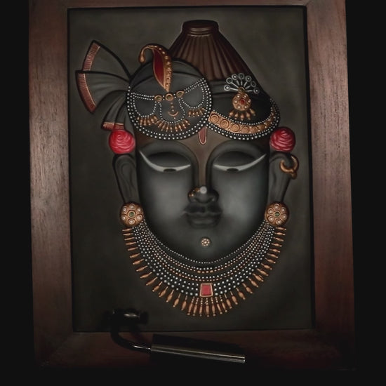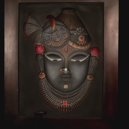 Bring the blessed darshan of Lord Shrinathji into your sacred space with this captivating 3D frame.
