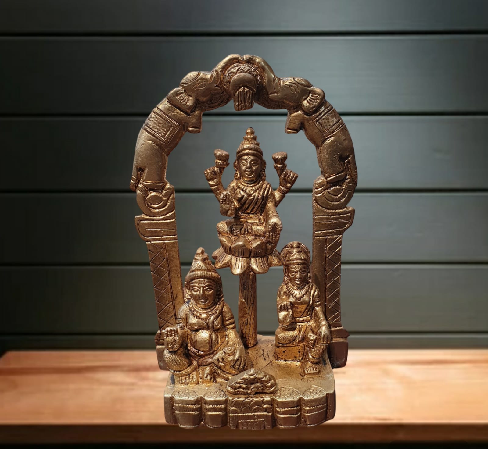 This statue is a masterpiece of brass art, capturing the divine essence of Kubera, Laxmi, and Riddhi. The intricate details and textures bring the deities to life, making this piece a perfect addition to any space where financial success and spiritual growth are sought.